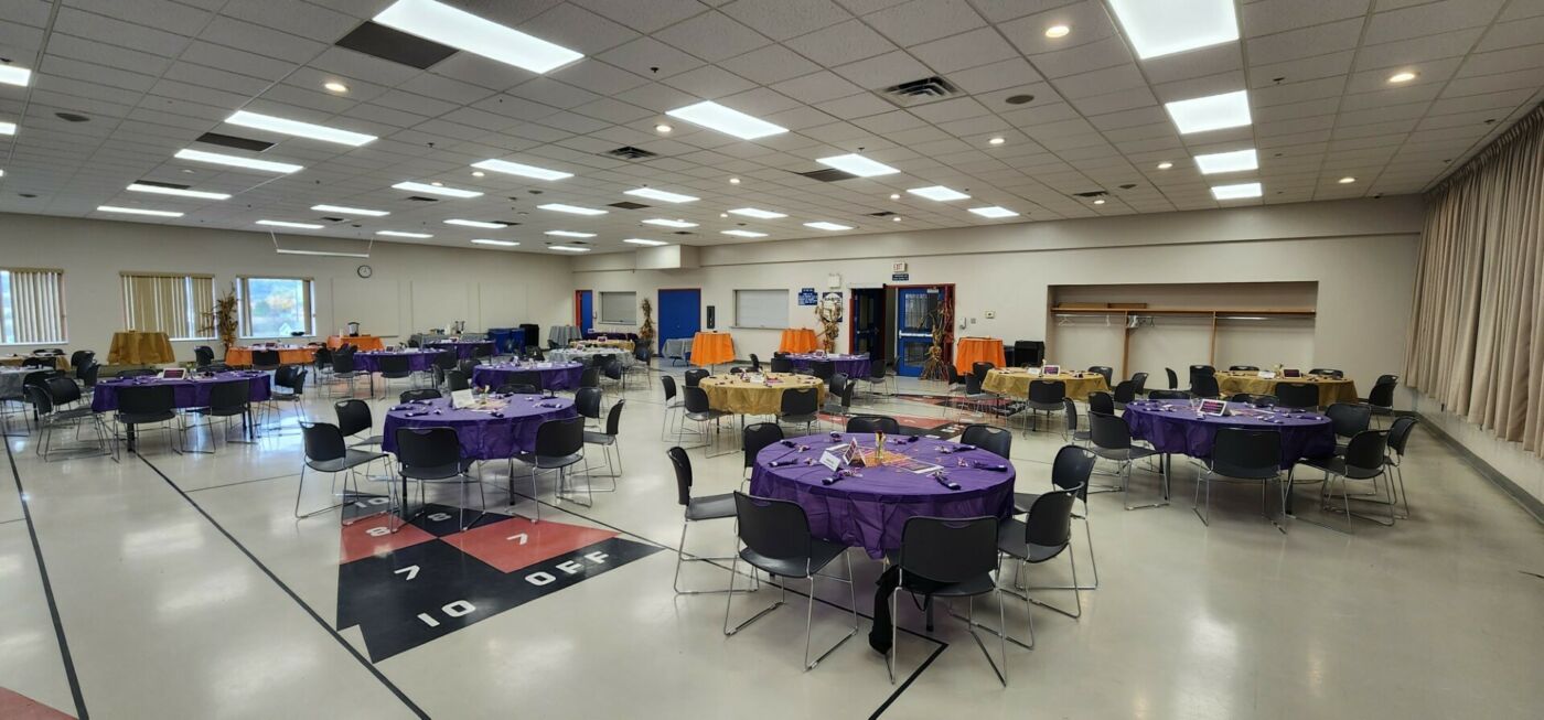 This facility is suitable for large events such as community dances, wedding receptions, family reunions, retirement parties, Christmas parties, auctions, business meetings, trade shows and conventions. This facility is licensed and a bar service will be provided by the Town if required by the renter. A kitchen is provided for caterers to set up for catered functions. Spacious parking is provided on a paved lot with easy access. Seating Capacity is 350 theatre style and 275 for licensed functions.