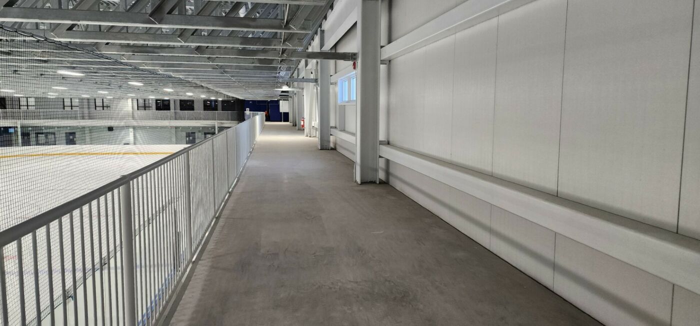 The indoor walking track goes around the B.E.I. ice pad #2. The walking track is open seven days a week from 7:00 a.m. to 10:00 p.m. and will be closed on occasion for special and paid events. The walking track is approximately 175 meters in length from the centerline.