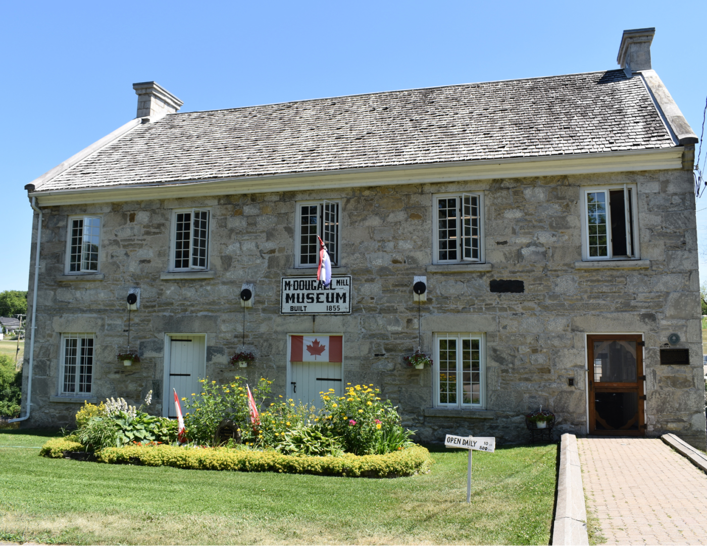 McDougall Mill stands on the shore of the Bonnechere River, a testament to the once-thriving industrial area powered by the drop in water at the Second Chute. Built in 1855 as a grist mill, it now serves as a local history museum and visitor information center. The museum features three floors of exhibits to explore, along with a gift shop. It is operated in partnership with the Town of Renfrew and the Renfrew & District Historical & Museum Society.